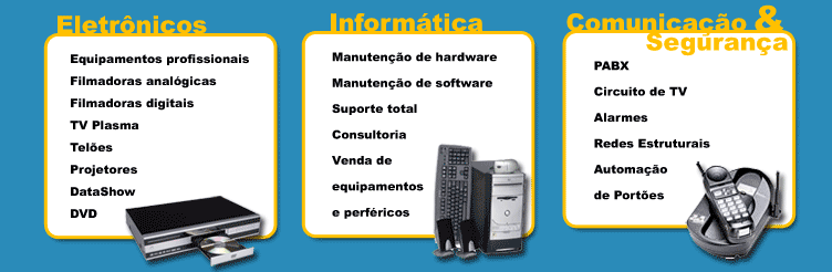 Página Incial Sobre a Empresa Entre em contato conosco Eletrônicos Informática Comunicação e Segurança